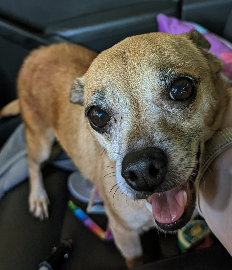 The day before Denise planned to surrender her dog to a shelter, her friend sent her a message telling her to call Ahimsa House. Within months, she was able to find a place. Ahimsa took care of Dog while she found suitable housing.