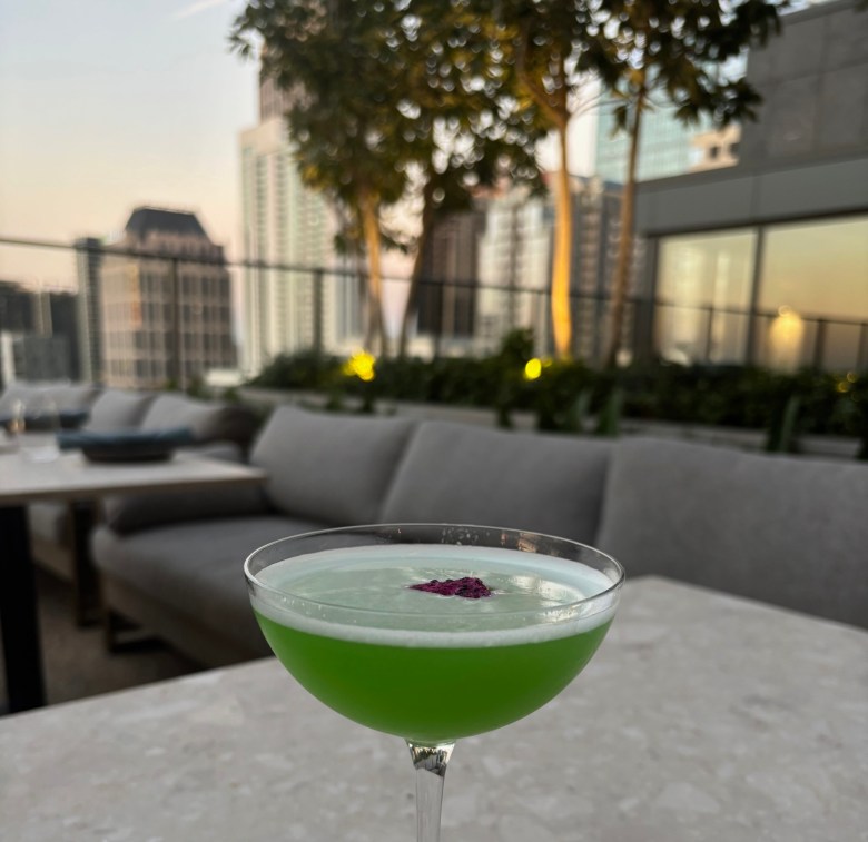 Tansel then combined the gin with Korean Milkis cream soda and Ghia chili-sumac soda to create a blend that pretty much tastes like a melted creamsicle with added complexity from the spices. He garnished the drink with a kimchi chip. (There’s something so special about a drink that comes with a snack.) The fermented flavors made a fantastic contrast to the sweet, aromatic cocktail.