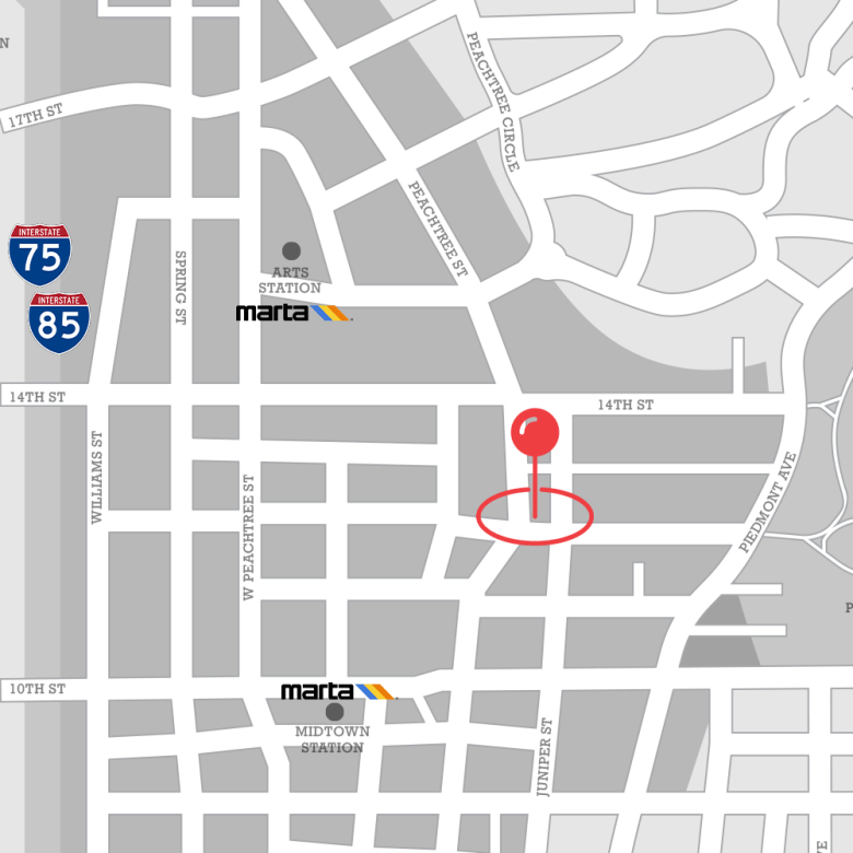 Parking available in nearby decks and surface lots. The venue is also a short walk from the Midtown MARTA station.